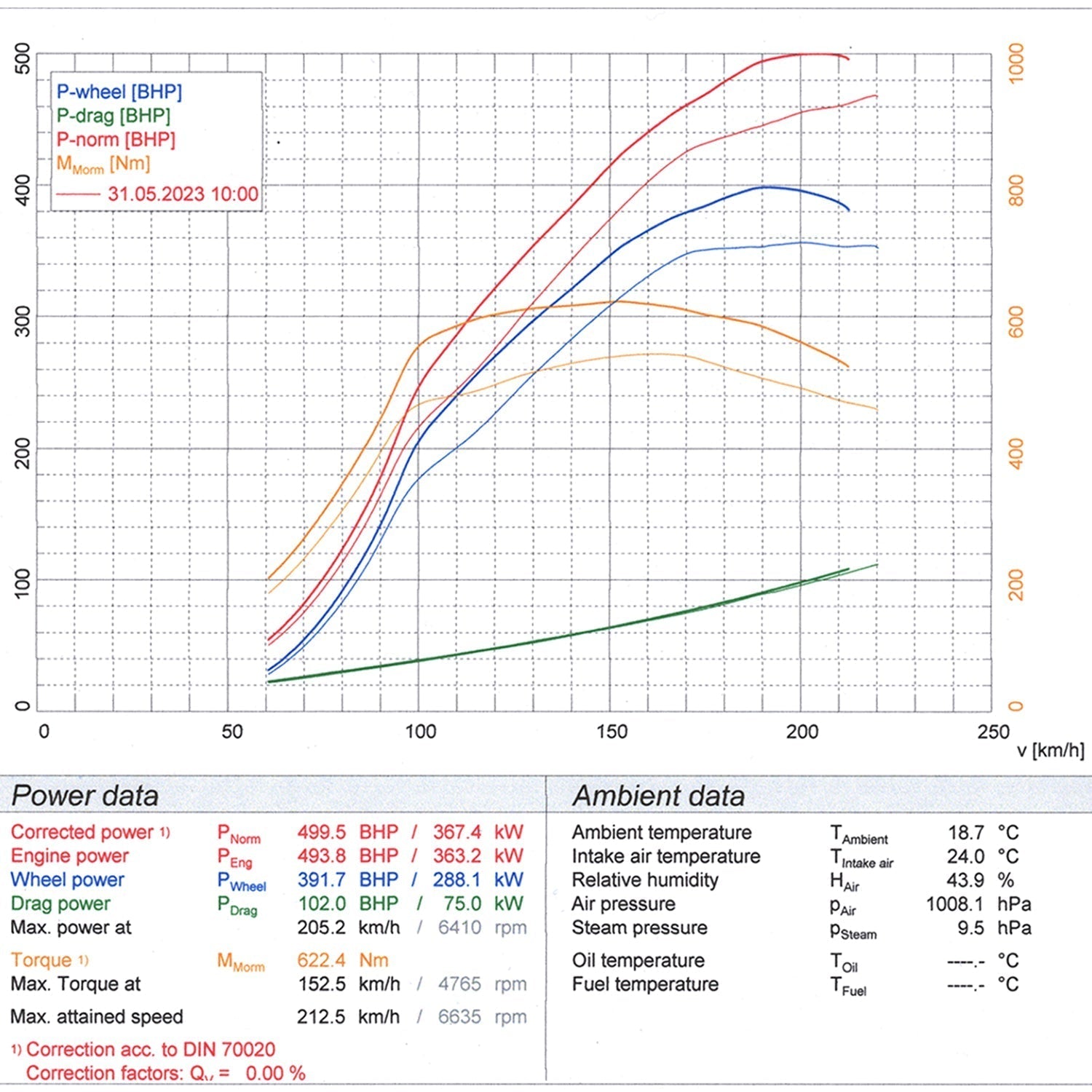Sound - Engine at Idle: 69dB (+6.7dB) - Static 4,000rpm test: 93.8dB (+13.1dB)