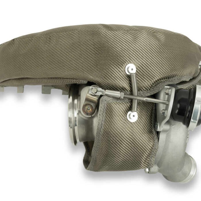 Improve gas flow and increase performance with our Audi RS3 engine turbo blanket. Our 8p RS3 turbo jackets work to insulate the hot side of the turbo and retain the heat within the exhaust gases themselves. Hotter gases accelerate faster leading to them leaving the system sooner improving spool up and throttle response. Insulating the hot side of your turbo also helps to lower the amount of heat from the turbo that dissipates into the engine bay and intake pipework. A cooler intake results in higher performance and more consistent power figures over time.