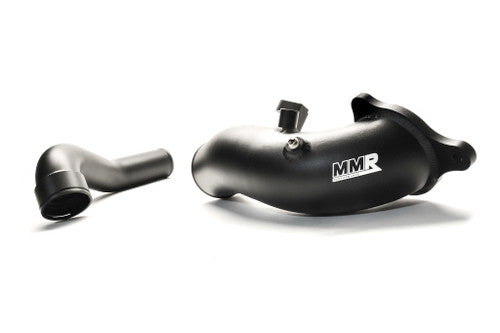The MMX high-flow charge pipe kit includes everything you need to improve the performance, reliability and aesthetics of your F20 or F30-powered M140/240/340 or M440. With increased boost pressure the standard pipework can be prone to splitting or cracking, with the MMX lightweight aluminium replacement pipes you can be assured of reliability even at significantly increased power outputs. The smooth bore pipework improves airflow versus the OE setup and due to reducing any deformation of the hoses under load or vacuum, the MMX charge pipes also improve throttle response and ultimately, power output. Finished in a durable crinkle black finish - contrasted by laser-etched MMX logo detailing, the MMX charge pipes look as good as they fit and perform, are a direct-replacement for the OE pipework and includes a silicone coupler hose, o-ring gasket, c-clip and required jubilee clips. The hard pipes also feature a handy 1/8” bung for the easy addition of either methanol, or water injection. WHAT'S IN THE BOX? Two high-flow aluminium charge pipes with CNC leak-free connections Silicone coupler hose o-ring gasket c-clip Jubilee clips x4 Throttle body bolts